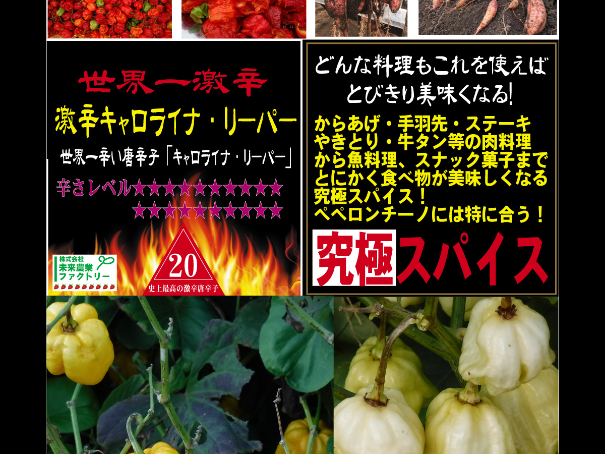 ギネス世界一認定の唐辛子「キャロライナ・リーパー」を始めとして、